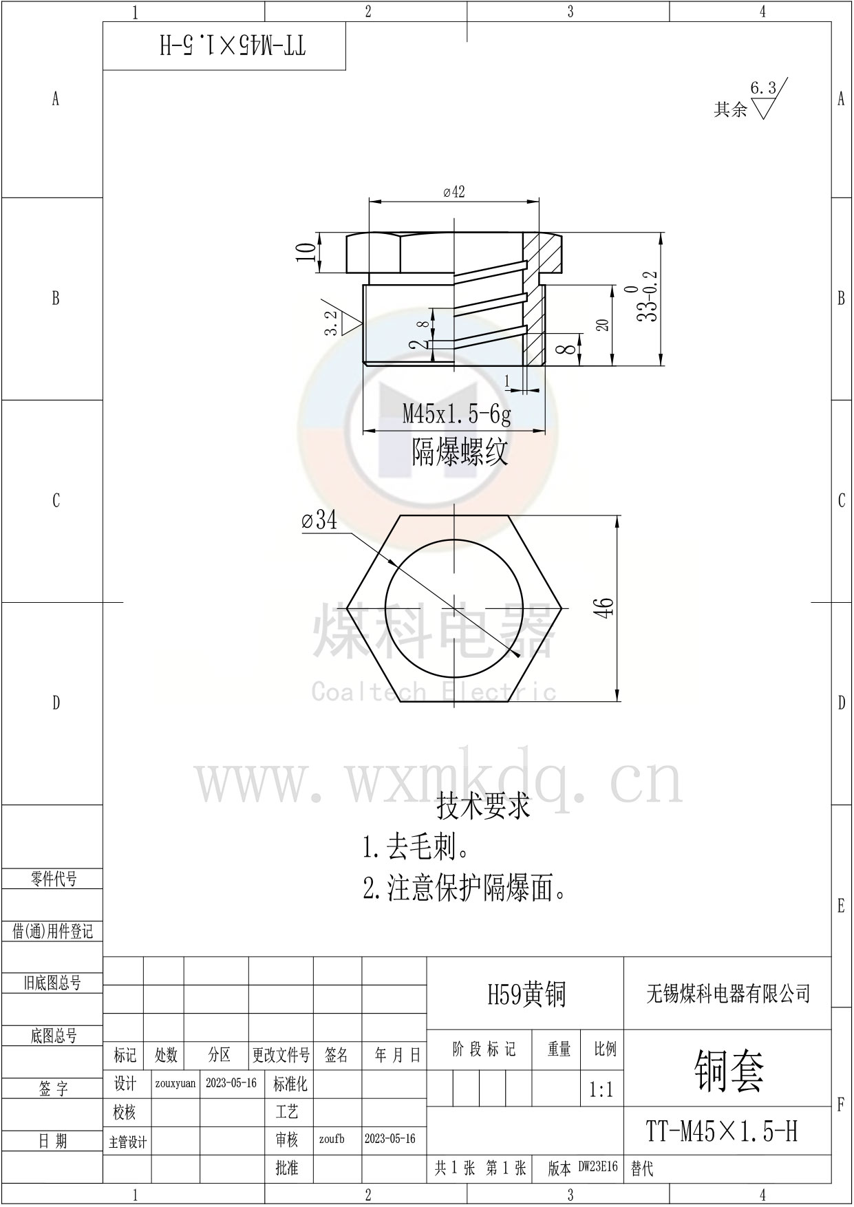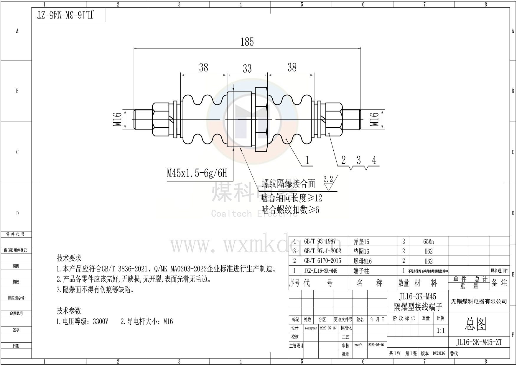 ◆ 安裝尺寸:M45x1.5 隔爆螺紋;