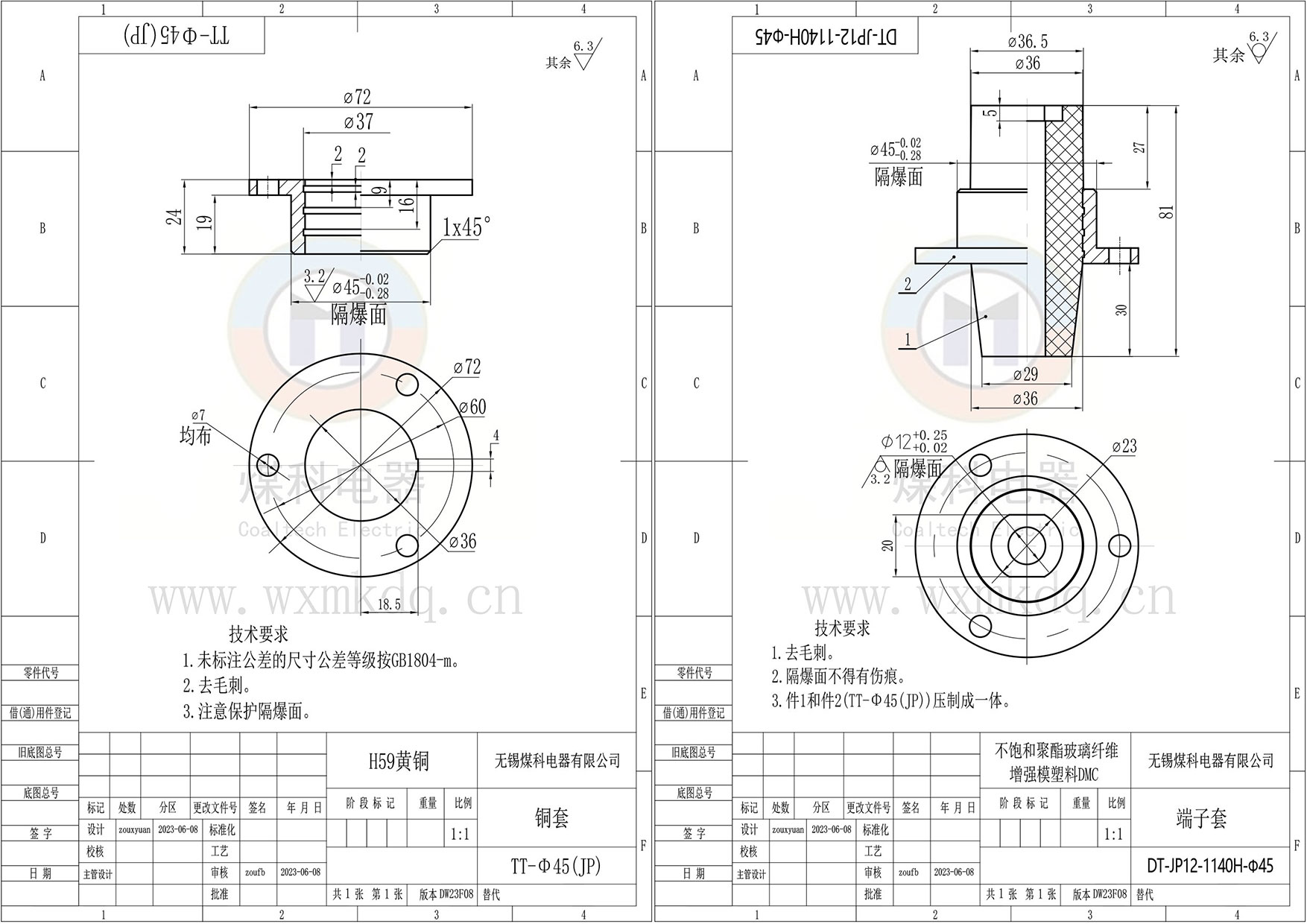 ◆ 安裝尺寸:Φ45 隔爆銅套;